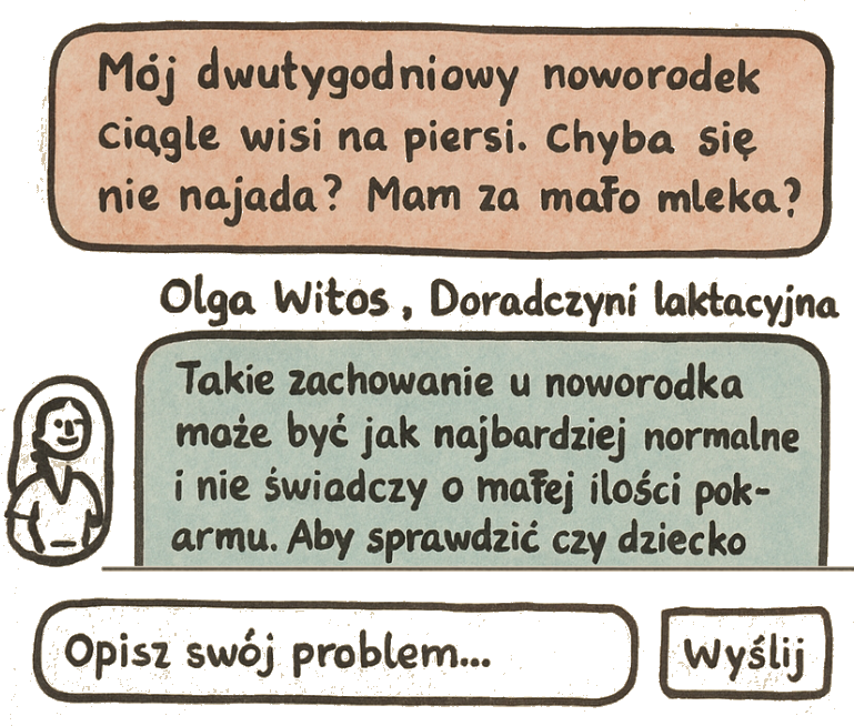 Doradczyni laktacyjna doradzi w sprawach karmienia i kłopotów z piersiami.